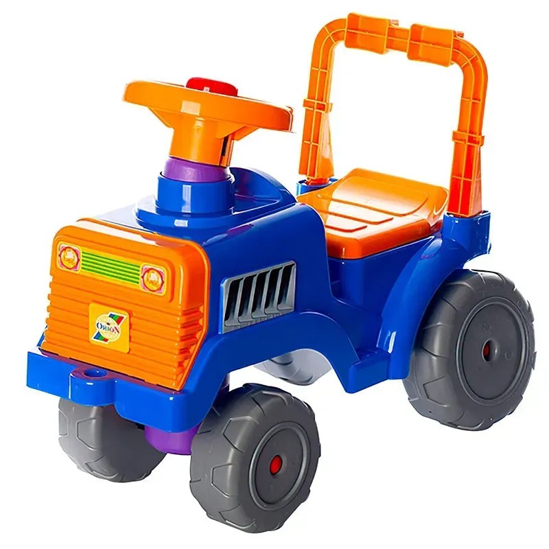 Дана модель зроблена з якісної пластмаси і витримує до 30 кг ваги. Машинка дуже зручна і практична. На ній можуть кататися діти від 3 років. Спинка - ручка може використовуватися для перенесення каталки. Кермо з клаксоном, він зазвичай приносить особливу радість малюкам. За допомогою керма направляються передні колеса. Під сидінням передбачена зона для дрібних речей або іграшок. Стійкість машинки забезпечується широкими колесами.