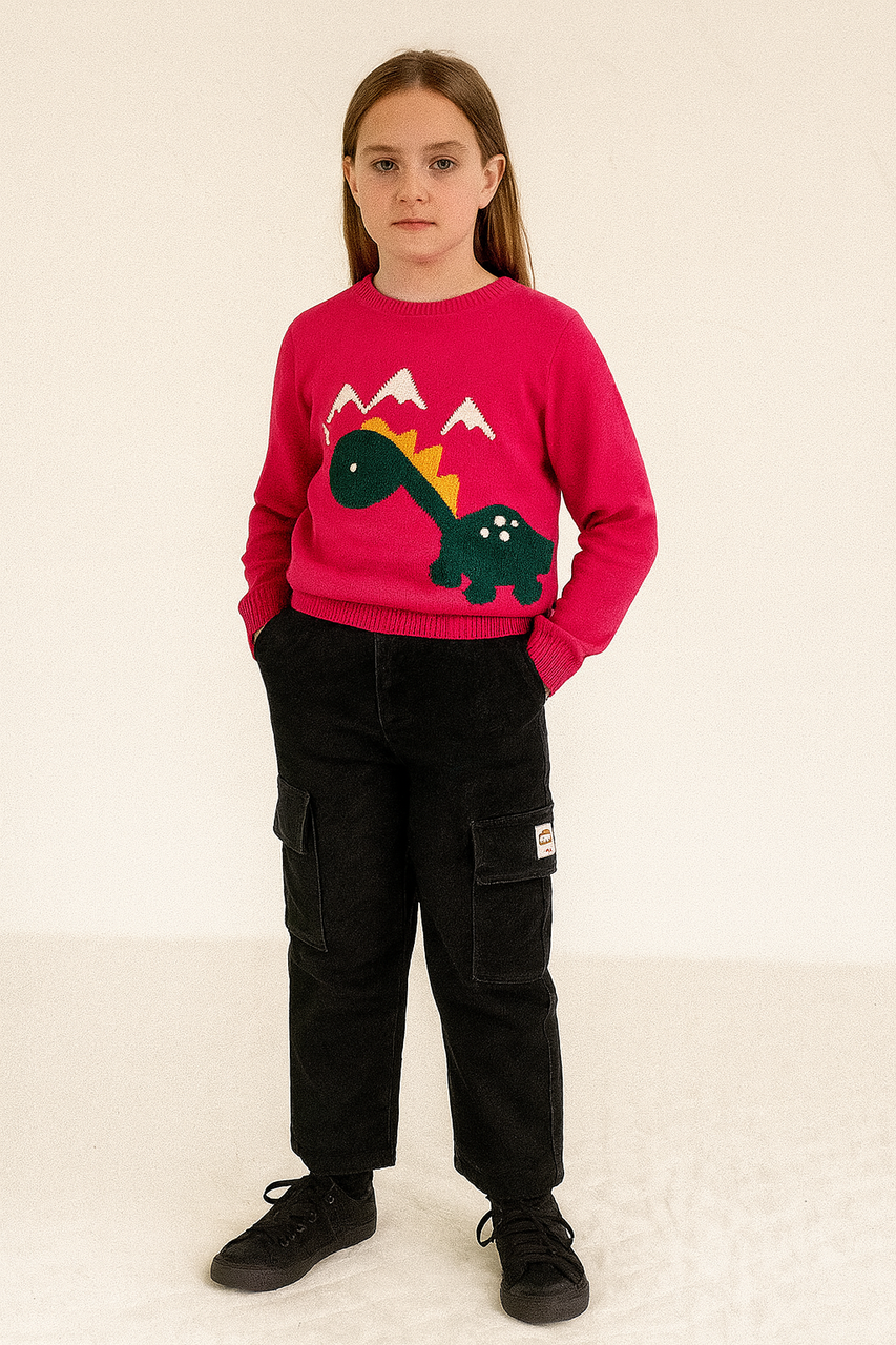 Модні дитячі джинси чорного кольору. Модель виконана у стилі карго, що додає практичності завдяки накладним кишеням. Виготовлені з якісного джинсового матеріалу, ці джинси забезпечують комфорт та є чудовим варіантом для повсякденного носіння.