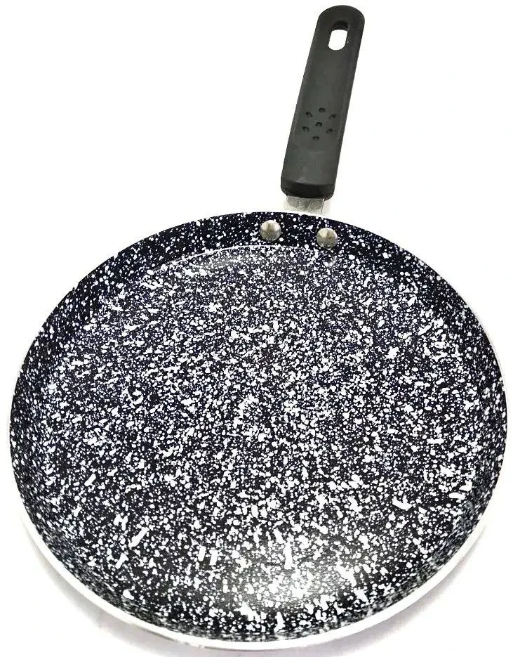 - Сковорода виготовлена з алюмінію зі зносостійким гранітним покриттям (суперстійке внутрішнє та зовнішнє антипригарне покриття).